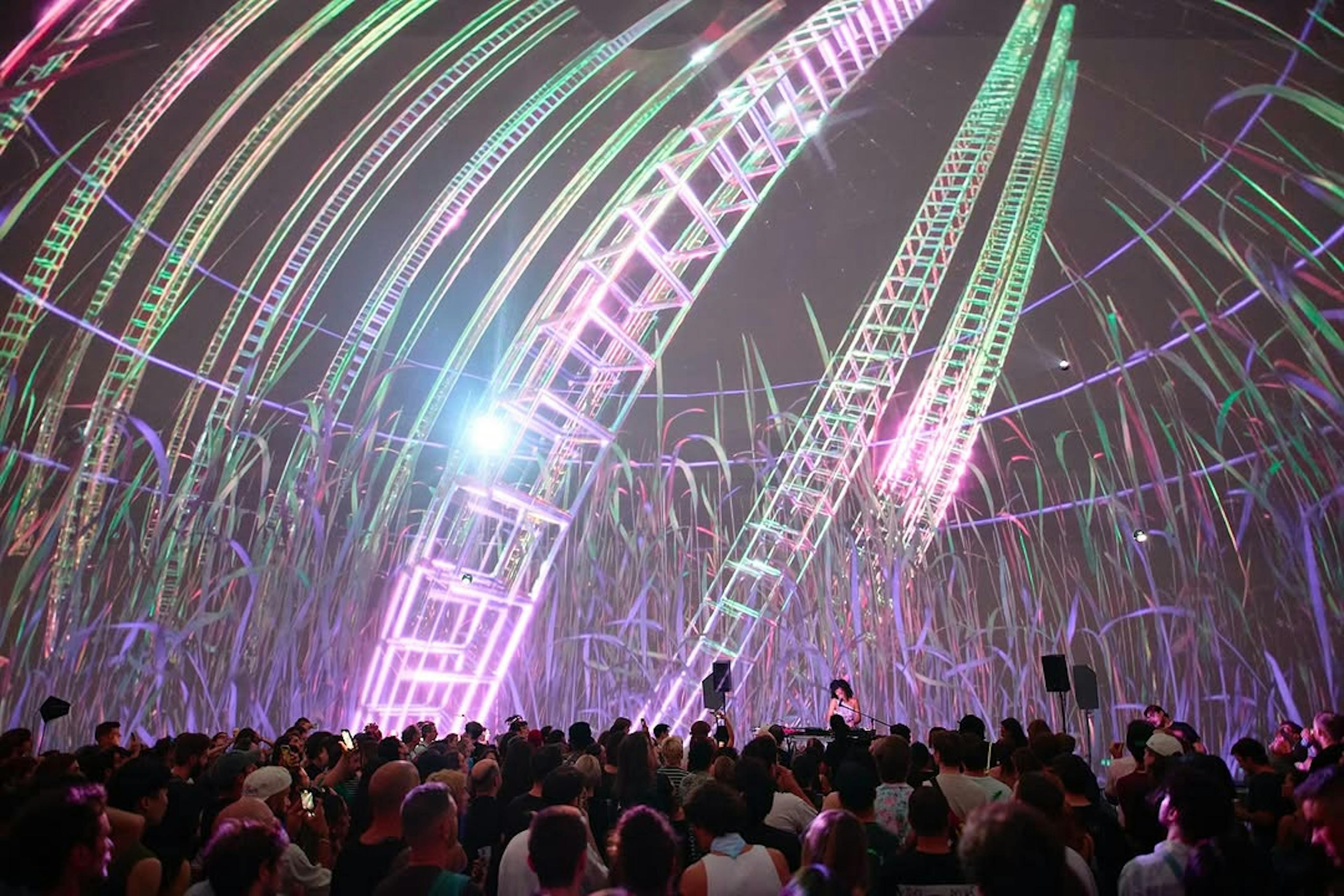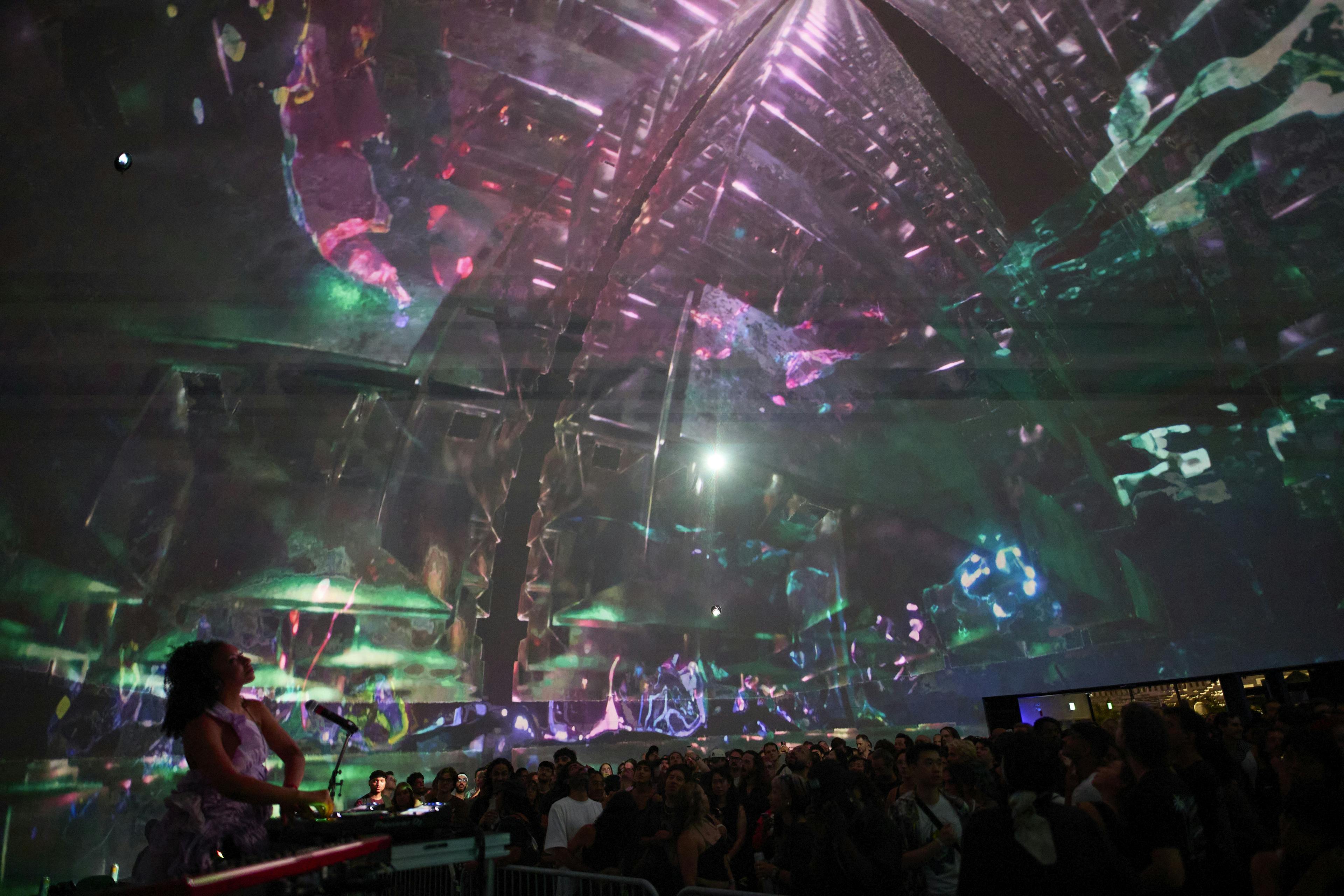 Visually, the piece embodied my signature style: a collision of organic flora motifs and grunge-inspired urban textures, unfolding within vast 360° environments. These surreal, large-scale spaces were animated with sweeping, grand motion across the dome, immersing the audience in a dreamlike yet visceral journey.